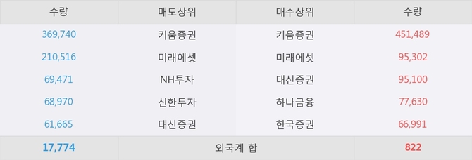 거래원 동향은 미래에셋, 하나금융 등이 매수 상위 목록에 나타나고 있다.