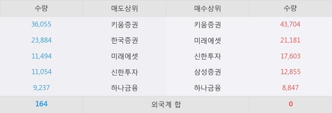 거래원 동향은 미래에셋, 삼성증권, 하나금융 등이 매수 상위 목록에 나타나고 있다.