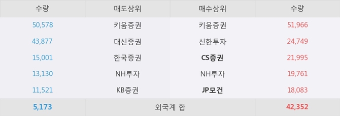 거래원 동향은 CS증권, JP모건, NH투자 등이 매수 상위 목록에 위치하고 있다.