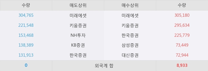 거래원 동향은 미래에셋, 삼성증권 등이 매수 상위 목록에 나타나고 있다.