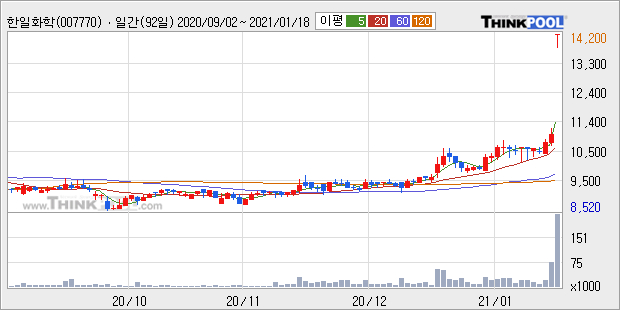 한일화학의 2019년 매출액은 전년대비 -28.9% 줄어든 1087억원이고, 영업이익 역시 전년대비 -49.1% 줄어든 23억원을 기록했다. 이 회사의 매출액 증감률과 영업이익 증감률은 각각 코스닥 하위 9%, 하위 28%에 해당된다.