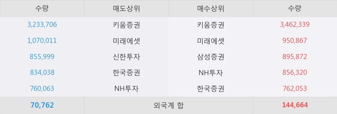 거래원 동향은 미래에셋, 삼성증권, NH투자 등이 매수 상위 목록에 나타나고 있다.
