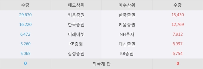 이 시각 주요 거래원은 NH투자, 한국증권, 키움증권 등이 매수 상위 창구에 자리하고 있다.