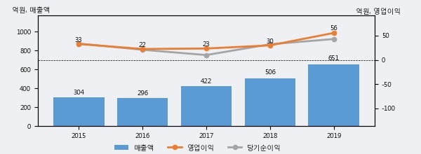 최근 3년간의 실적을 살펴보면 안정적 성장세를 보이고 있다. 최근 3년간 매출로 볼 때 매년 증가하고 있고 그 증가폭도 확대되고 있다.