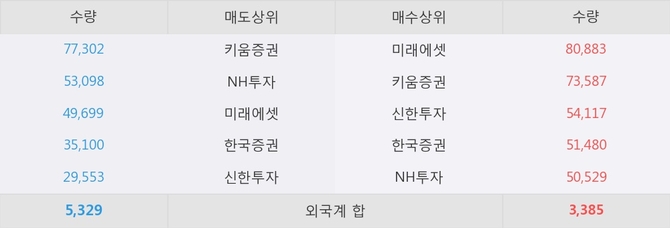 거래원 동향은 미래에셋, NH투자 등이 매수 상위 목록에 나타나고 있다.
