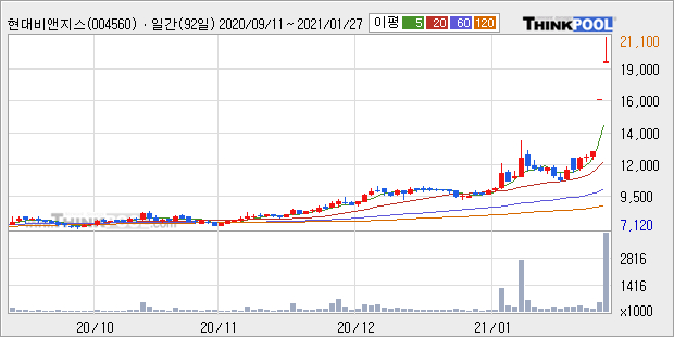 일봉 차트의 모습은 현재 단기·중기 이평선이 정배열 상태로 전형적인 상승세를 보이고 있다. 최근 이 종목의 차트에서 캔들패턴(하락반전형) 등의 특이사항이 발생했다.