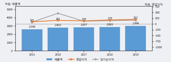 최근 3년간의 실적을 살펴보면 안정적 성장세를 보이고 있다. 최근 3년간 매출로 볼 때 매년 꾸준히 증가하고 있고 그 증가폭도 확대되고 있다.