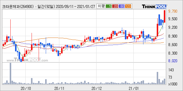 크라운제과는 2019년 매출액 3866억원과 영업이익 265억원을 기록했다. 전년대비 매출은 -0.5% 하락했고, 영업이익은 30.9% 상승했다. 이 회사의 매출액 증감률과 영업이익 증감률은 각각 코스피 하위 41%, 상위 34%에 해당된다.