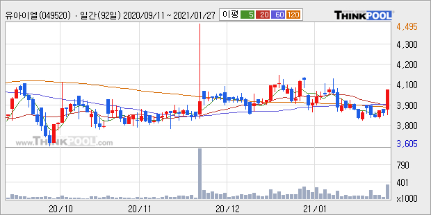 유아이엘의 2019년 매출액은 4085억으로 전년대비 -3.6% 하락했고, 영업이익은 89억으로 전년대비 5.9% 상승했다. 이 회사의 매출액 증감률과 영업이익 증감률은 각각 코스닥 하위 32%, 상위 47%에 해당된다.