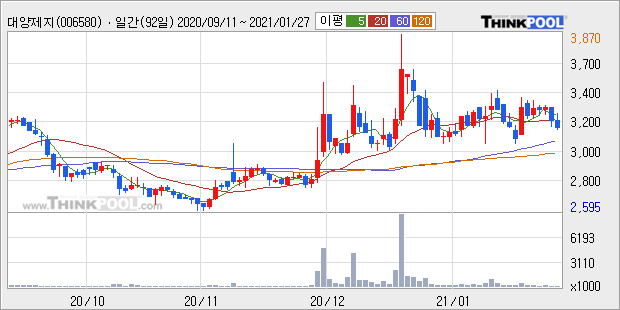 대양제지는 2019년 매출액 2594억원과 영업이익 327억원을 기록했다. 전년대비 매출은 -7.9%, 영업이익은 -21.4% 각각 하락했다. 이 회사의 매출액 증감률과 영업이익 증감률은 각각 코스닥 하위 26%, 하위 39%에 해당된다.