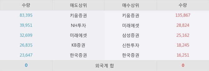 거래원 동향은 미래에셋, 삼성증권 등이 매수 상위 목록에 나타나고 있다.