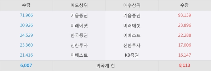 이 시각 주요 거래원은 미래에셋, 키움증권, 이베스트 등이 매수 상위 창구에 자리하고 있다.