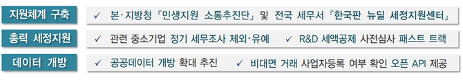 국세 분야 공공데이터를 확대 개방하고, 비대면 거래에서 사업자 등록 여부를 확인할 수 있는 오픈 API를 제공한다.