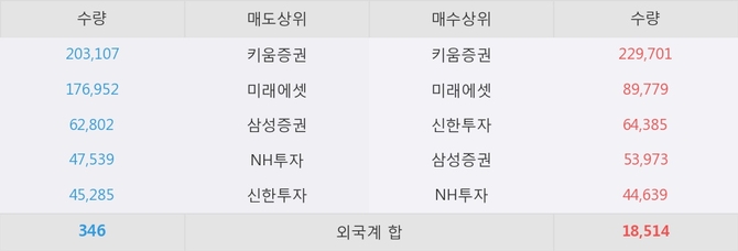 거래원 동향은 미래에셋, 삼성증권, NH투자 등이 매수 상위 목록에 나타나고 있다.