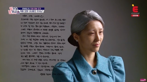 이어 그녀가 남긴 유서가 공개됐다. 80대의 이은비는 "띠롱이 여보 나에요. 우리에게도 이런 순간이 왔네요. 아 그 전에 웃고 있죠 지금? 내 덕에 건강하게 오래 살고 있네요. 역시 아내 잘 만났죠? 난 당신을 만나 한 사람의 여자로서 누릴 행복을 모두 누리다 가요."라며 덤덤하게 말했다.