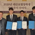 (조세금융신문=진민경 기자) 대산신용호기념사업회는 지난 2일 서울 중구 컨퍼런스하우스 달개비에서 ‘2026년 대산보험장학생 장학증서 수여식’을 개최했다고 3일 밝혔다. 대산신용호기념사업회는 교보생명을 창립해 국내 보험산업을 선도한 대산 신용호 선생의 뜻을 계승하기 위해 2005년 설립된 공익법인으로, 대산보험대상 시상사업, 대산보험장학사업, 보험연구지원사업 등을 통해 보험학술 발전과 인재 양성에 기여하고 있다. 특히 2007년 시작된 ‘대산보험장학사업’은 차세대 보험 인재를 지속적으로 발굴·지원해온 대표 사업으로, 지난해까지 총 63명의 장학생을 선발해 약 6억 7,200만 원의 장학금을 지원하며 보험학계 발전의 기반을 다져왔다. 올해 장학생으로는 김정운(포항공과대학교 산업경영공학과 박사 3학기), 소일웅(고려대학교 보험계리금융공학협동과정 석사 3학기), 유재휘(서울대학교 환경관리학과 박사 1학기) 씨가 최종 선발됐다. 이들에게는 1인당 연간 1,200만 원(학기당 600만 원)씩 총 3,600만 원의 장학금이 지급된다. 또한 기념사업회는 장학생들의 연구 역량 강화를 위해 국내외 학술대회 참가 및 연구 발표 활동도 적극 지원할 계획이다. 이날 수여식에서 남궁