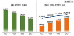(조세금융신문=고승주 기자) 올해 9월까지 거둔 국세수입이 289.6조원으로 집계됐다. 지난해 같은 시기보다 34.3조원 증가한 수치다. 지난해 국세 실적이 너무 낮았기에 10%대를 훌쩍 넘는 상승임에도 기뻐할 수는 없다. 감액추경으로 연간 목표세수가 하향 조정됐기에 더딘 경제회복으로 인한 느린 회복에 가깝다. 연간 국세수입 실적은 2021년 344.1조원, 2022년 395.9조원, 2023년 344.1조원, 2024년 336.5조원이었다. 2023년, 2024년 실적이 너무 낮았다. 2023년, 2024년 기업 영업이익과 경상성장 규모는 2022년보다 높았지만 윤석열 정부 감세로 세수동력이 크게 저하됐고, 여기에 기업 성장‧임금‧소비 위축 및 정체가 겹쳤다. 2025년도 9월 누적 기준, 가장 큰 변동이 있었던 건 법인세다. 연도별 1~9월 누적 법인세수는 2021년 62.2조원, 2022년 95.7조원, 2023년 71.9조원, 2024년 54.5조원, 2025년 76.0조원이다. 2024년이 워낙 저조해 올해 증가폭이 우수하다고 평가하긴 어렵다. 다만, 징수 흐름으로 보면 의미가 있다. 1년 치 법인세는 3월 법인세와 8~9월 법인세 중간예납 이 두