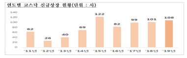 (조세금융신문=곽호성 기자) 올해 코스닥 신규 상장 기업 수가 108사로 지난 2002년 이후 2위를 기록했다. 기술특례기업수는 22사였으며 2005년 기술특례제도 도입 이후 가장 많았다. 올해 공모금액은 약 2조6000억원으로 전년에 비해 24% 증가했다. 22일 한국거래소는 올해 코스닥시장 신규상장 현황 및 주요 특징을 공개했다. 올해 기술특례상장 기업 수는 22사로 2005년 제도 도입 이후 역대 최고였다. 비(非)바이오 기업의 기술특례 상장이 늘어 기술특례 업종 다변화가 지속됐다. 기술특례 상장전단계인 기술평가 신청 기업 수는 48사였고 지속적 증가했다. 한국거래소는 향후에도 기술특례 상장이 증가할 것이라고 전망했다. 올해 공모금액이 전년보다 24% 증가한 이유에 대해선 에코프로비엠(1728억원), SNK(1697억원) 등 대형공모기업의 자금조달에 있다고 분석했다. 한국거래소는 기존 기술평가트랙 이외에 여러 가지 유형의 특례상장 기업이 증가해 코스닥 상장 트랙 다변화가 정착됐다고 평가했다. 2017년 1월에 주관사 성장성추천, 이익미실현, 사업모델 트랙이 도입됐다. 사업모델 기반 기업으로 2사(플리토, 캐리소프트)가 처음 신규 상장됐다. 주관사 성장성