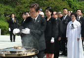 (조세금융신문=구재회 기자) 이재명 대통령은 6일 서울 동작구 국립서울현충원에서 거행된 제70주년 현충일 추념식에 참석했다. 취임 후 첫 국가기념일 행사이다. 대통령실은 이날 보도자료에서 "국가와 국민을 지키기 위해 희생하고 헌신한 순국선열과 호국영령을 추모하고, 그 숭고한 정신을 계승해 국민통합을 이루기 위한 것"이라며 이번 이 대통령의 참석 배경을 설명했다. 이날 추념식에는 국가유공자와 유족, 정부 주요 인사, 각계 대표, 시민 등 약 4천여명이 참석했다. 특히 추념식에는 지난달 해군 해상초계기 추락 사고로 순직한 고(故) 박진우 중령, 고 이태훈 소령, 고 윤동규 상사, 고 강신원 상사의 유족들과 2023년 12월 서귀포 감귤창고 화재 현장에서 순직한 고 임성철 소방장의 유족들이 초청됐다. [조세금융신문(tfmedia.co.kr), 무단전재 및 재배포 금지]