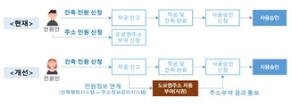 (조세금융신문=구재회 기자) 새로 지은 건축물에 대해 사용승인을 받을 때 앞으로는 별도로 도로명 주소를 신청하지 않아도 주소가 자동으로 부여된다. 국토교통부는 건축물 신축 시 착공 신고가 완료되면 건축주가 신청하지 않아도 지방자치단체가 알아서 도로명주소를 부여하도록 업무절차와 시스템을 개선했다고 8일 밝혔다. 국토부는 앞서 행정안전부와 협업해 주소정보관리시스템(KAIS)과 건축행정시스템인 '세움터'의 필수 정보를 연계하는 방안을 개발했다. 이에 따라 건축주가 착공신고를 하면 KAIS는 세움터로부터 인허가 정보를 전달받아 지자체 담당자에게 건물번호를 부여해야 한다는 알림을 보낸다. 알림을 받은 지자체 도로명주소 담당자는 직권으로 도로명주소를 즉시 부여한다. 아울러 도로명주소를 부여할 때 시작부터 완료까지 단계별 진행 상황을 건축주 등에게 문자메시지로 알려준다. 기존에는 지자체에 신축건물에 대한 사용승인 신청을 하기 전에 '도로명주소 부여'를 따로 신청해야 했다. 이를 모르는 민원인은 사용승인 서류만 작성해 구청 등을 방문했다가 도로명주소를 받아 다시 사용승인을 신청하는 과정에서 전체 진행 과정이 최대 14일 가량 지연돼 불편을 겪었던 것으로 전해졌다. [조세금