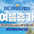 (조세금융신문=권영지 기자) 이디야커피가 본격적인 휴가철을 맞아 이디야멤버스 회원을 대상으로 휴가비 및 경품을 증정하는 ‘이디야오더왕의 여름 휴가’ 이벤트를 진행한다고 25일 밝혔다. 오늘(25일)부터 8월 21일까지 4주간 진행되는 이번 이벤트는 이디야커피의 비대면 모바일 주문∙결제 서비스인 ‘이디야오더’를 통해 참여 가능하다. ‘이디야오더’ 서비스를 이용할 수 있는 ‘이디야멤버스’ 앱은 이디야커피에서 음료 구매 시 스탬프 적립 및 무료 쿠폰, 이벤트 참여 등 다양한 혜택을 제공하는 모바일 멤버십 서비스다. 이디야커피는 행사기간 이디야오더를 가장 많이 이용한 고객을 대상으로 ▲1등(1명)에게 ‘하나투어 100만 원권’ ▲2등(2명)에게 ‘롯데호텔리조트 30만 원권’ ▲3등(3명)에게 ‘롯데호텔리조트 20만 원권’ ▲4등(10명)에게 ‘이디야카드 3만 원권’을 증정하고, 무작위 추첨을 통해 선정된 ▲5등(300명)에게는 ‘아메리카노 무료이용권’을 제공한다. 또 이벤트 기간 이디야오더 이용 고객 대상 주차별 2000명, 총 8000명을 추첨해 ‘음료 1천 원 할인 쿠폰’을 증정한다. ‘이디야오더왕의 여름 휴가’ 이벤트 1~5등 당첨 결과는 9월 1일 이디야커피