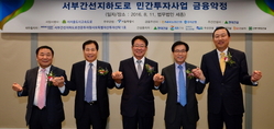 (조세금융신문=김사선 기자) 수익형 민간투자방식(BTO)으로 추진되는 서울 서부간선 지하도로 지하화사업에 대한 금융약정이 법무법인 세종 회의실에서 11일 체결했다고 밝혔다. 이로써 본 사업은 민간투자사업 타당성 검증을 거친지 8년 만에 금융약정을 마무리 짓고 2021년 완공을 목표로 사업에 속도를 낼 전망이다.이 사업은 서울 성산대교 남단과 금천나들목(IC)을 잇는 現 서부간선도로 10.3Km구간 지하에 4차선 터널을 건설하는 프로젝트다. 본 구간은 현대건설, GS건설, 포스코건설 등 7개 건설사가 시공하게 되며, 설계속도 80km인 본 도로가 완성되면 서부간선 도로는 만성적 정체를 벗어남은 물론 도로 주변 주거환경도 크게 개선될 전망이다.대표 금융주선은 농협은행(은행장 이경섭)이 맡았고 공동 주선기관인 우리은행을 비롯 사학연금, 흥국생명, 흥국화재, 현대해상 등 총 10개 기관이 참여하여 투자약정을 완료했다.모집된 투자금은 전액 사모펀드로 운용되며 펀드운용은 미래에셋자산운용이 맡았다. 해당 펀드는 향후 35년간 운용되며 목표수익률은 4% 중·후반이다. 완공 후에는 재무적투자자(FI)가 건설사들(CI) 지분을 매입하며 이 매입가격은 통행량 수준에 따라 조정될