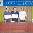 (조세금융신문=김사선 기자) 주택도시보증공사(사장 김선덕, 이하 HUG)는 20일 부산광역시청에서 부산시, 부산국제건축문화제와 함께 부산지역의 노후주택 및 사회복지시설의 개보수를 위한 ‘HOPE with HUG’ 프로젝트의 3자 협약을 체결했다고 22일 밝혔다. ‘HOPE with HUG’는 부산건축가협회 소속 건축가들이 설계 재능을 기부하며, HUG와 부산지역 건설사가 각각 사업비의 1/2을 부담하여 부산의 저소득 노후주택 및 사회복지시설을 개보수 하는 프로젝트이다. 이번 협약을 통해 HUG와 부산국제건축문화제는 프로젝트의 사업비용 조성 및 지역 건축전문가의 재능기부자 모집을 담당하고, 부산시는 프로젝트 관련 행정업무를 지원키로 했다. 올해에는 기초수급자 가정 2세대 및 지역아동센터 2개소를 수리할 예정이며, 부산지역 건축사사무소와 건설사가 각각 설계와 후원에 참여할 예정이다. 이날 협약식에 참석한 김선덕 사장은 “「HOPE with HUG」 프로젝트를 통해 부산의 건축전문가 및 향토기업들과 뜻깊은 일을 할 수 있어 기쁘게 생각한다.”며, “이번 프로젝트를 통해 수리된 집과 복지시설에서 생활하실 분들이 건강하고 행복하시길 바란다.”고 밝혔다. 한편, HUG