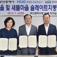 (조세금융신문=김사선 기자) 주택도시보증공사(사장 김선덕, 이하 HUG)는 부산지역의 노후 슬레이트 지붕 개량을 위해 26일 부산광역시청에서 협약식을 갖고 부산시, 한국사회복지협의회와 행복마을 및 새뜰마을의 슬레이트 지붕개량을 위한 3자 협약을 체결했다고 밝혔다.이번 협약을 통해 부산시는 사업에 필요한 자료 및 행정사항을, 한국사회복지협의회는 슬레이트 지붕 개량공사를, HUG는 슬레이트 지붕 개량공사에 필요한 사업비 지원을 담당한다.HUG는 지난 2014년부터 도시재생 사회공헌의 일환으로 부산지역의 31세대 슬레이트 지붕개량에 2.4억원을 지원하였으며, 금년에는 협약에 따라 행복마을 및 새뜰마을의 40가구의 지붕개량을 위해 2억원을 지원할 예정이다.슬레이트는 1970년대 지붕개량 사업에 널리 사용되었으나 10∼25%의 석면을 함유하고 있어 거주자의 석면노출 및 환경오염을 일으킬 수 있는 것으로 알려졌다.이날 전달식에 참석한 HUG 김기돈 경영전략본부장은 “HUG는 부산지역에서의 사회공헌을 꾸준히 실시하고 있다.”며, “이번 슬레이트 지붕개량 사업으로 행복마을과 새뜰마을의 주민들이 건강한 환경에서 생활하시는데 도움이 되길 바란다.”고 밝혔다.한편, HUG는 아