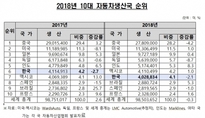 (조세금융신문=김성욱 기자) 지난해 우리나라의 자동차 생산량이 10대 자동차 생산국 중 유일하게 3년 연속 감소하며 멕시코에 밀려 세계 7위로 내려앉았다. 한국자동차산업협회(KAMA)가 10일 발표한 ‘2018년 10대 자동차 생산국 현황’에 따르면 한국의 국내 자동차 생산량은 전년 대비 2.1% 줄어든 402만9000대로 집계됐다. 한국의 자동차 생산량은 2015년 455만6000대 수준이었으나 이후 2016년 422만9000대, 2017년 411만5000대, 2018년 402만9000대 등으로 3년 연속 감소세를 나타냈다. 반면 지난해 멕시코의 자동차 생산량은 411만대로 전년(405만9000대) 대비 1.0% 증가했다. 이에 따라 한국의 자동차 생산량 순위는 2016년 인도에 5위 자리를 내어준 지 2년 만에 다시 한 단계 하락하며 멕시코에 밀려 세계 7위로 내려앉았다. 세계 자동차 생산량에서 한국이 차지하는 비중도 4.1%로 역시 전년 대비 0.1% 포인트 줄었다. 한국자동차협회 관계자는 “대립적 노사관계와 경직된 노동시장 구조 등에 따른 고비용·저효율 생산구조 고착화로 생산경쟁력이 상실됐다”며 “지난해 2월 한국GM의 군산공장 폐쇄로 인