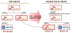 (조세금융신문=김성욱 기자) SK텔레콤이 포괄적주식교환을 통해 SK인포섹을 완전 자회사로 편입한다. 교환 주식은 SK텔레콤 자사주 1.6%와 SK인포섹 지분 100%다. SK㈜에서 SK텔레콤으로 이관되는 SK인포섹은 국내 1위 정보보안업체로 연 매출 2000억원을 상회한다. 보안 관제와 컨설팅·솔루션 등이 주 사업영역이다. 지난해에는 아시아 최초로 세계 선도 보안업체들의 연합체인 CTA에 가입해 경쟁력을 인정받았다. SK텔레콤은 SK그룹 내 보안 사업 역량을 결집해 시너지 창출을 추진한다. 단기적으로는 NSOK와 합병하는 ADT캡스와 SK인포섹의 영업망을 공유해 양적 성장을 도모할 방침이다. 또 중장기적으로는 물리보안에서 정보보안까지 통합 서비스 체계를 구축해 국내 보안 서비스 시장의 변화를 주도할 계획이다. 이에 따라 SK텔레콤의 정보통신기술(ICT)과 SK인포섹의 정보보안 플랫폼, 물리보안 사업자인 ADT캡스 출동 인력을 융합해 새로운 보안 서비스를 탄생시킬 수 있다는 구상이다. 예를 들어 SK텔레콤 영상보안 솔루션으로 외부인 침입을 감지하고 SK인포섹 보안 플랫폼으로 솔루션 해킹을 방지하는 한편 ADT캡스 출동보안요원이 출입을 통제하는 방식이