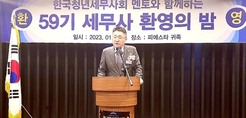 . (조세금융신문=김영기 기자) 두둥_ 지난 6일 오후 6시30분 서울 강남구 선릉역 소재 ‘피에스타귀족, 이곳에서는 청년세무사를 중심으로 하는 한국청년세무사회 ‘제59기 세무사 환영의 밤’ 행사가 개최됐다. 행사는 1부에서 개회선언, 국민의례, 한국청년세무사회 회장 인사말, 선배세무사의 경험사례 발표내빈소개로 진행됐으며, 2부에서는 내빈 소개 및 내빈축사, 신입세무사 임원진 등 소개, 세무사배치 전달식, 폐회, 사진촬영 등으로 이뤄졌다. 이날은 국세동우회 신년인사회 행사가 다른 장소(여의도 국민일보)에서 동시에 진행되고 있는 관계로 내빈참석이 늦어졌다. 먼저 박형섭 한국청년세무사회장 ‘환영사’에서 “59기 세무사 여러분~ 세무사 합격을 진심으로 축하드립니다. 그리고 이자리에 참석하신 신입세무사 여러분과 멘토로 참석해 주신 선배세무사 여러분을 한국청년세무사회 전체 회원 모두는 한마음으로 환영합니다. 반갑습니다~”라고 나이스하게 말문을 열었다. 박 회장은 “오늘 이 자리에 이렇게 많은 분들이 참석해 주셨습니다. 지금 옆에 앉아있는 수습 동기 세무사 얼굴 한번씩 보시지요~ 서로 인사도 나누시고요~ 인사 다 나누셨나요? 인사 나눈 동기의 나이를 아실까요? 아니면