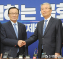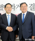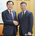 (조세금융신문=김용진 기자)서울지방세무사회 회장 후보로 등록한 김완일 후보와 임승룡 회장 후보가 29일 오후 서울 서초동 서울지방세무사회에서 기호 추첨 후 자신의 기호를 보이며 지지를 호소하고, 선전을 다짐하며 악수를 하고 있다. [조세금융신문(tfmedia.co.kr), 무단전재 및 재배포 금지]