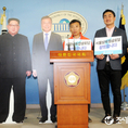 (조세금융신문=김용진 기자)민중당 관계자들이 11일 오전 국회 정론관에서 김정은 위원장 서울방문 남북정상회담 환영단 발족 기자회견에서 문재인 대통령과 김정은 북한 국무위원장 등신대를 세워놓고 기자회견을 하고 있다
