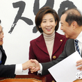 (조세금융신문=김용진 기자) 김병준 자유한국당 비상대책위원장(오른쪽)과 나경원 신임 원내대표(가운데)가 13일 오전 국회에서 열린 자유한국당 비상대책위원회의에서 인사하고 있다. (왼쪽은) 정용기 정책위의장.