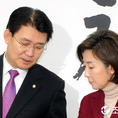 (조세금융신문=김용진 기자)나경원 자유한국당 신임 원내대표(오른쪽)와 정용기 정책위의장이 13일 오전 국회에서 열린 비상대책위원회 회의에 앞서 대화 하고 있다