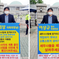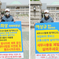 (조세금융신문=김용진 기자) (왼쪽부터)배미영 한국세무사고시회 상임이사와 이창식 한국세무사고시회 총무부회장이 4일 오전 여상규 법사위원장 자택과 국회 정문 앞에서 각각 국회 법사위에 계류중인 세무사법 통과를 촉구하며 1인 시위를 하고 있다. [조세금융신문(tfmedia.co.kr), 무단전재 및 재배포 금지]