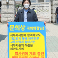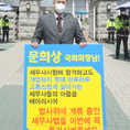 (조세금융신문=김용진 기자) 안성훈 제56기 세무사 시험 합격자가 23일 오전 국회 정문 앞에서 문희상 국회의장에게 "이경수 동기 회장 외 1677명의 세무사 시험 합격자들이 등록을 못해 무직으로 몰리는 고통을 겪고 있다"며 "국회 법사위에 계류중인 세무사법을 조속히 통과 시켜 달라"는 1인 시위를 하고 있다. [조세금융신문(tfmedia.co.kr), 무단전재 및 재배포 금지]