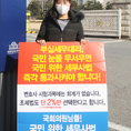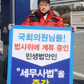 (조세금융신문=김용진 기자) 장보원 한국세무사고시회 부회장이 4일 오전 국회 정문 앞에서 법사위에 계류중인 세무사법을 즉각 의결하라는 1인 시위를 하고있다. [조세금융신문(tfmedia.co.kr), 무단전재 및 재배포 금지]
