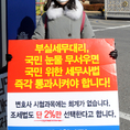 (조세금융신문=김용진 기자) 윤수정 한국세무사고시회 재무, 대외협력부회장이 5일 오전 국회 정문 앞에서 법사위에 계류중인 민생법안인 세무사법을 즉각 의결하라는 1인 시위를 하고있다.(사진=한국세무사고시회 제공) [조세금융신문(tfmedia.co.kr), 무단전재 및 재배포 금지]