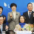 (조세금융신문=김용진 기자) 더불어민주당 16번재 인재 영입 인사 원옥금 이주민센터 동행 대표가 4일 오전 국회에서 열린 인재 영입 인사 발표에서 참석자들과 기념 촬영을 하고 있다. [조세금융신문(tfmedia.co.kr), 무단전재 및 재배포 금지]