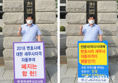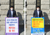 (조세금융신문=김용진 기자) 이창식 한국세무사고시회 총무부회장이 6일 오전 서울 헌법재판소 앞에서 변호사들의 세무사 자동자격 헌법소원에 반대하는 시위를 하고 있다. [조세금융신문(tfmedia.co.kr), 무단전재 및 재배포 금지]