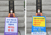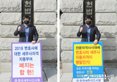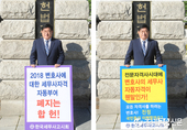 (조세금융신문=김용진 기자) 이창식 한국세무사고시회 총무 부회장이 8일 오전 서울 헌법재판소 앞에서 변호사들의 세무사 자동자격 헌법소원에 반대하는 1인 시위를 하고 있다. [조세금융신문(tfmedia.co.kr), 무단전재 및 재배포 금지]