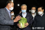 (조세금융신문=김용진 기자) 김종인 국민의힘 비상대책위원장이 22일 밤 서울 송파구 가락시장을 찾아 배추 경매 현장을 둘러봤다. 이날 김 위원장은 국민의당 안철수 대표가 '자유시장경제 구조를 만들어야 한다'는 취지로 이른바 '공정경제3법'을 반대한 것과 관련해 "자유시장경제가 무엇인지 정확히 인식을 못 하는 것 같다"고 비판했다. 또한 안 대표의 의견에 대한 입장을 묻자 "자유시장경제라고 해서 아무것도 안 하고 내버려 두면 제대로 움직이지 않는다"며 이같이 말했다. 아울러 국민의당과 정책 연대에 대해서는 "꼭 정책연대를 이어나갈 당위성을 갖고 있지 않다"며 "국민의힘은 국민의힘 나름대로 생각을 하는 것이고 그 사람들은 그 사람들 나름의 생각을 하는 것"이라고 말했다. [조세금융신문(tfmedia.co.kr), 무단전재 및 재배포 금지]