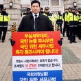 (조세금융신문=김용진 기자) 김현배 한국세무사고시회 지방청년 상임이사가 6일 오전 국회 정문 앞에서 세무사법 개정안을 즉각 의결 하라는 1인 시위를 하고 있다 [조세금융신문(tfmedia.co.kr), 무단전재 및 재배포 금지]