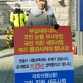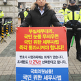 (조세금융신문=김용진 기자) 이태혁 한국세무사고시회 연구상임이사가 30일 오전 국회 정문 앞에서 기장 대행과 성실 확인 업무 허용 하지 않는 세무사법을 즉각 의결하라는 1인시위를 하고있다. [조세금융신문(tfmedia.co.kr), 무단전재 및 재배포 금지]