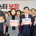 (조세금융신문=김용진 기자) 나경원 자유한국당 원내대표와 정용기 정책위의장 등 의원들이 3일 오전 국회 로텐더홀에서 열린 비상의원총회에서 친문게이트 국정조사, 민생법안 처리, 필리버스터 보장을 요구하고 있다. [조세금융신문(tfmedia.co.kr), 무단전재 및 재배포 금지]
