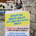 (조세금융신문=김용진 기자) 배미영 한국세무사고시회 상임 이사가 3일 오전 국회 정문 앞에서 법사위는 세무사법 취지 대로 실무 능력 없는 공짜자격 변호사에게 6개월 이상 수습교육을 의무화 하라는 1인 시위를 하고 있다. [조세금융신문(tfmedia.co.kr), 무단전재 및 재배포 금지]