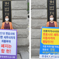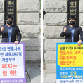 (조세금융신문=김용진 기자) 이창식 한국세무사고시회 총무부회장이 29일 오전 서울 헌법재판소 앞에서 변호사들의 세무사 자동자격 헌법소원에 반대하는 시위를 하고 있다. [조세금융신문(tfmedia.co.kr), 무단전재 및 재배포 금지]