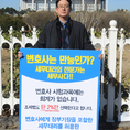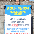 (조세금융신문=김용진 기자) 김범석 한국세무사고시회 조직 부회장이 12일 오전 국회 정문 앞에서 변호사에게 장부 기장을 포함한 세무대리를 허용한 세무사법 개악안 철회를 촉구하는 1인 시위를 하고 있다.