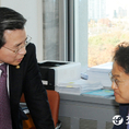 (조세금융신문=김용진 기자) 김정우 기획재정위원회 조세소위 위원장이 추경호 자유한국당 의원과 18일 오전 국회에서 열린 조세소위 위원회 회의에서 대화를 하고 있다.